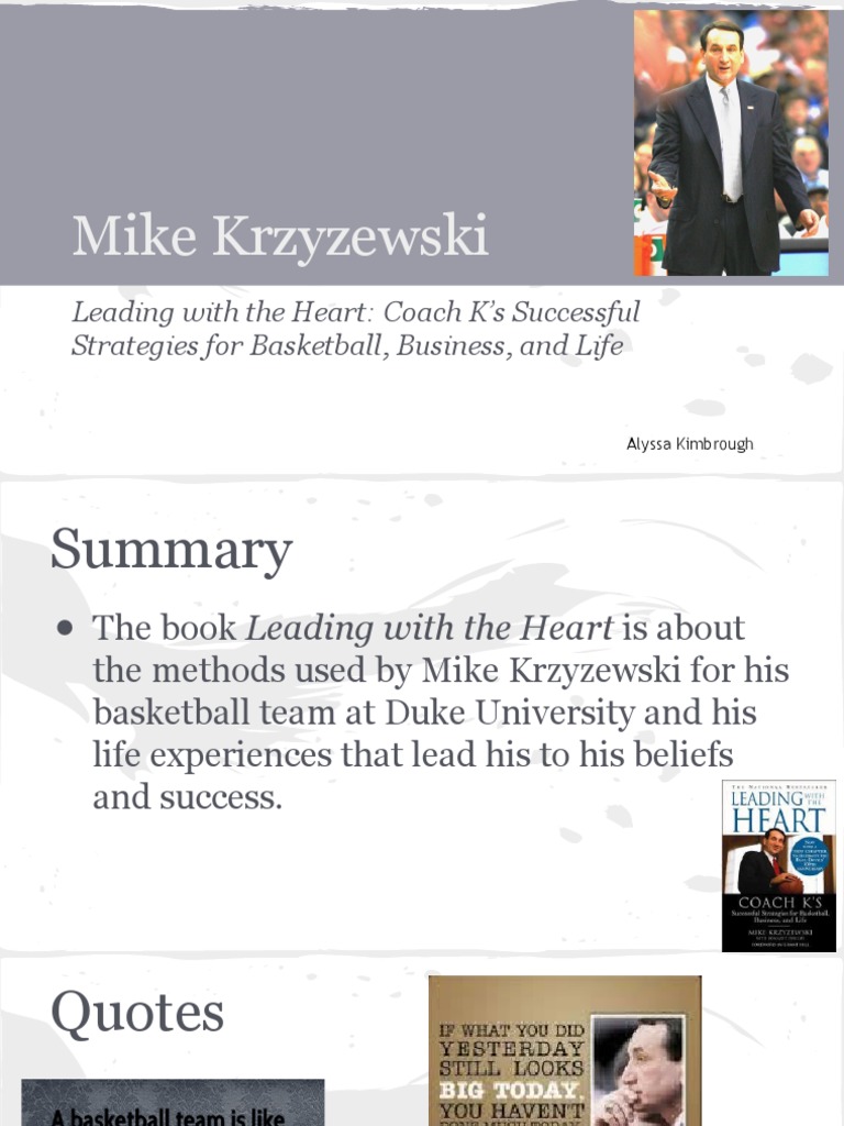 Mike Krzyzewski Leading With The Heart Coach K S Successful Strategies For Basketball Business And Life Leadership Cognition from imgv2-2-f.scribdassets.com Explore our collection of motivational and famous quotes by authors you know and love. A good coach can bring success to the workplace by being … Discover and share coach k quotes on teamwork. I don't know how many more years i will continue to coach, but i wanted to be able to teach for the rest of my life, coach k told me. Coach k's successful strategies for basketball, business, and life, p.59, hachette uk 36 copy quote the only way you're going to grow is … Coach k's successful strategies for basketball, business, and life by grant hill 2,128 ratings, 4.18 average rating, 115 reviews leading … Coaching quotes from the best sports coaches. If you don't have time …